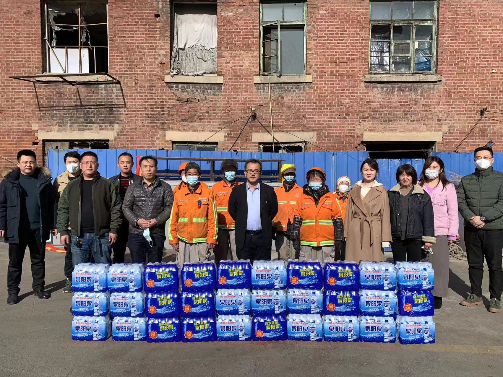 為馬路灣街道環(huán)衛(wèi)工人贈送瓶裝飲用水